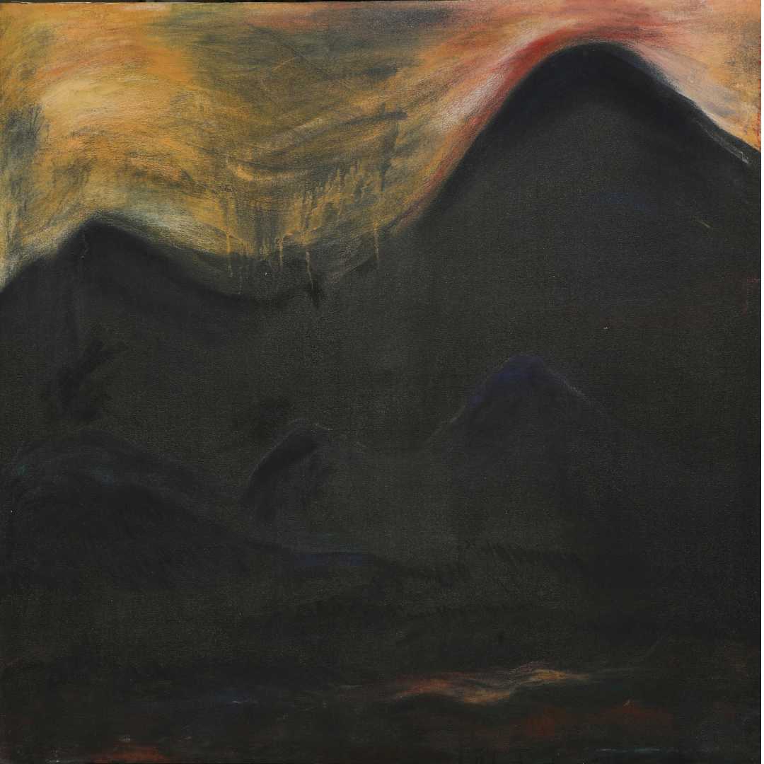 In this evocative work by Amitabha Bhattacharya, an intense sky of ochre and crimson looms over the silhouetted contours of shadowy mountains. The glowing upper sky contrasts the subdued darkness below, creating a visual dialogue between light and void. Drawing from his mastery of ink techniques and East Asian aesthetics, Bhattacharya channels a meditative silence into the canvas. The piece feels suspended between day and night, presence and absence—mirroring his scholarly engagement with historical and cultural transitions across Asia