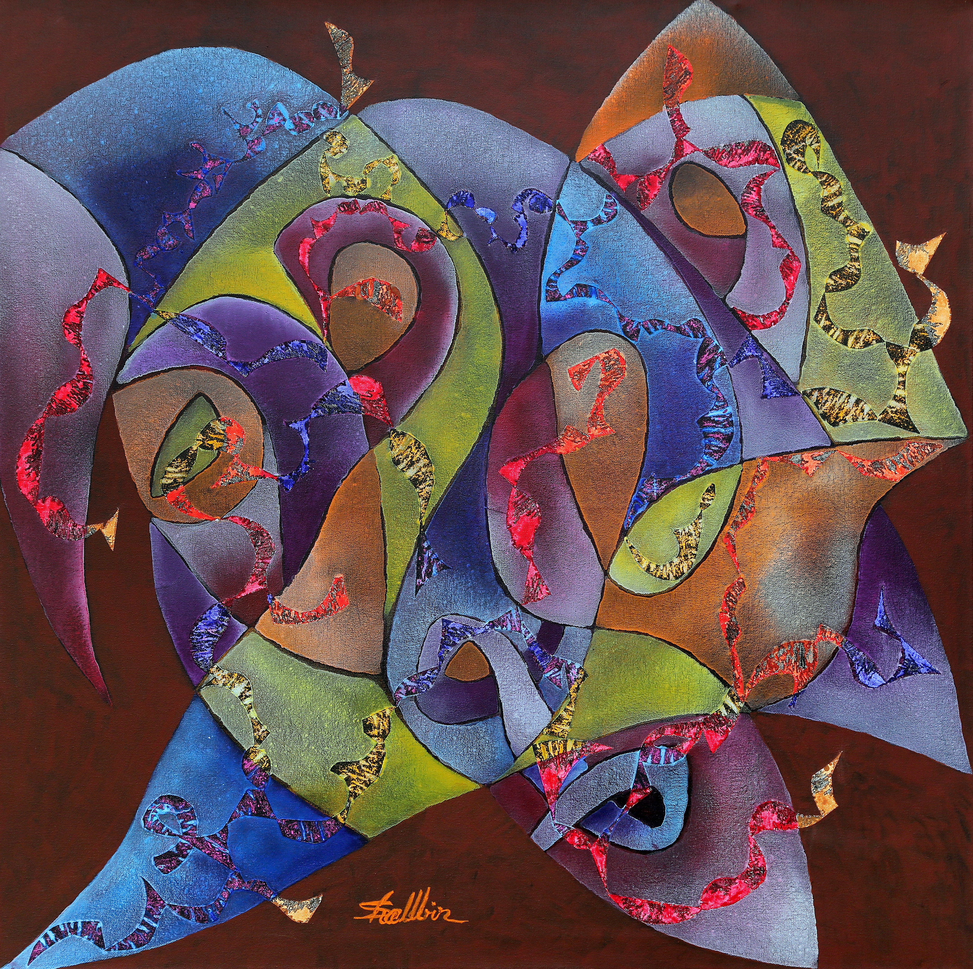 At the bottom centre, the artist's signature "Faellbin" is written in orange. The overall effect is lively and intricate, evoking a sense of fluidity, complexity, and energy, typical of abstract art that invites viewers to interpret the forms in their own way.
