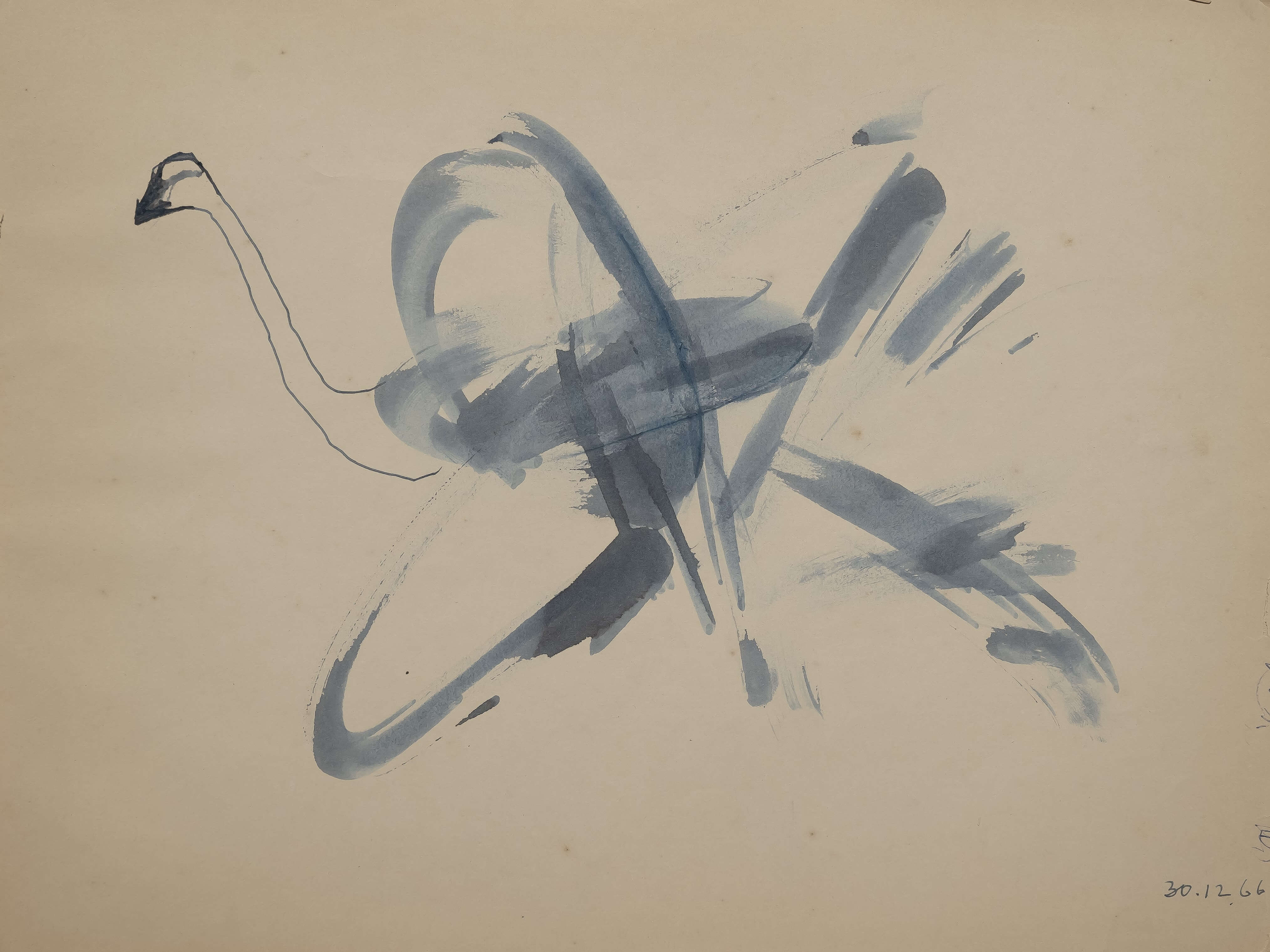 This artwork radiates a sense of freedom and grace, capturing the fleeting elegance of a bird in motion. The sweeping brushstrokes feel like a burst of energy, as if the artist wanted to freeze the rhythm of flight itself. The swan’s elongated neck, rendered with minimal lines, contrasts beautifully with the dynamic swirls of blue, creating a delicate balance between stillness and movement. It evokes calmness yet also carries an undercurrent of vitality, like a moment suspended between serenity and motion.