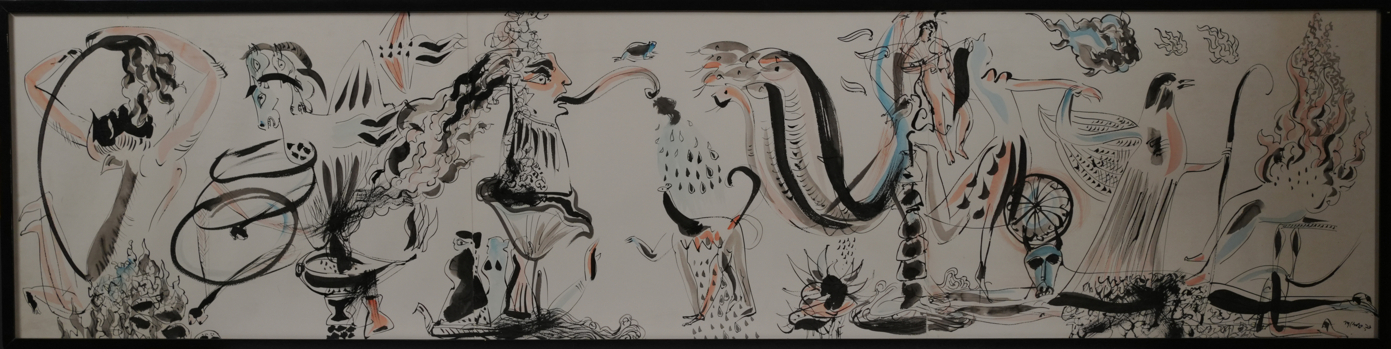 Beauty haunts the mind and life becomes an exclusive quest for art. Sometimes mind looks forward with a leap from mundaneness of day by day existence. It transcends the limits of lights and shadows, objects and its shadows or co-existence and solitude. Here lies Subhendu's craft, visually abstract but at the same time concrete with bold lines, wash technique or with the grammarless absurdity.