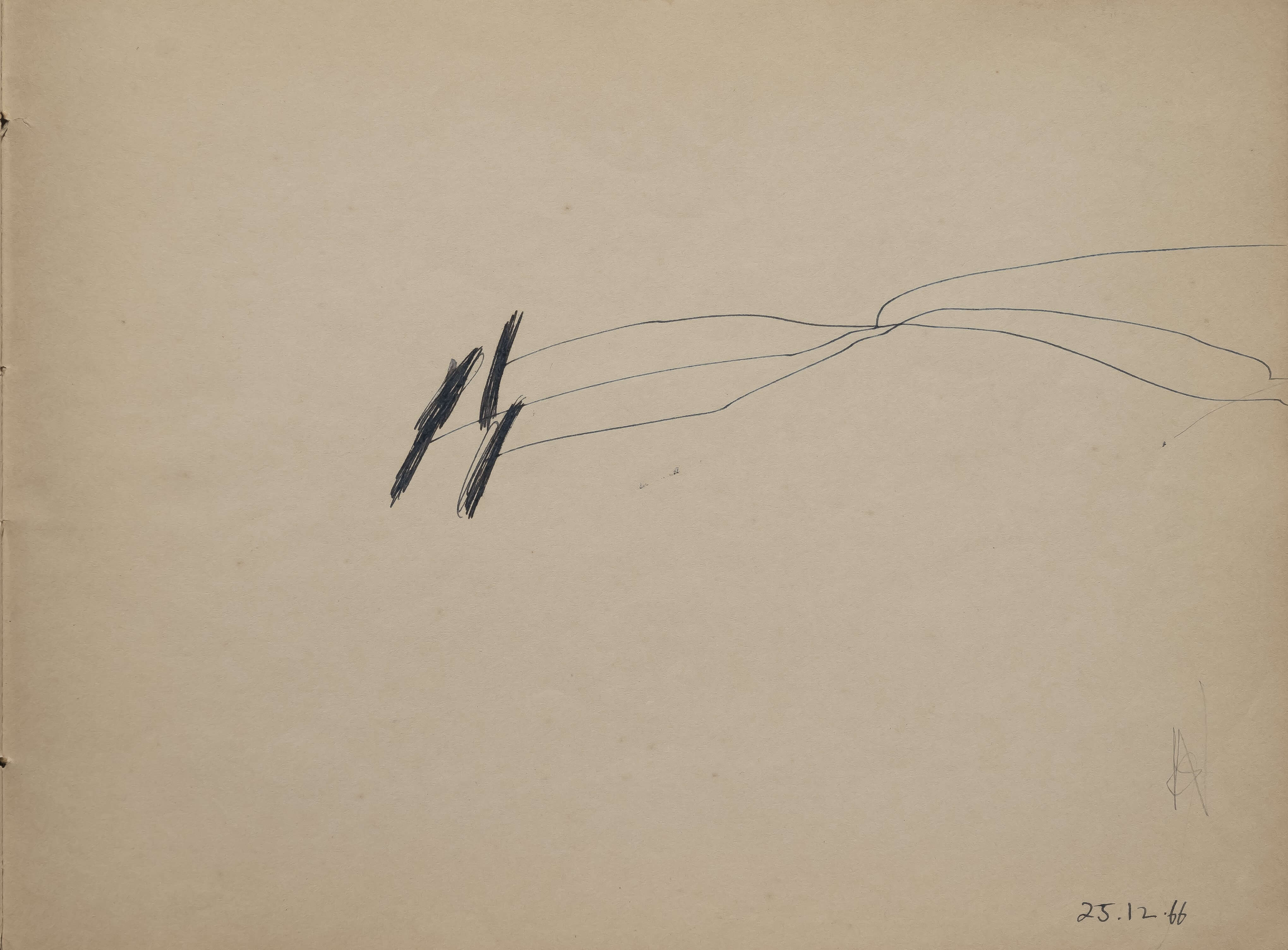 This drawing feels like an expression of inner conflict—firmness set against fragility. The thick black strokes suggest determination, like pillars of strength, while the trailing thin lines feel like fragile threads reaching outward, uncertain of their destination. The emptiness around the forms evokes silence, solitude, or even a sense of incompleteness. It carries the emotional weight of something unfinished, like thoughts left unsaid. The boldness resists, while the thin lines wander—together they capture the tension between stability and vulnerability, between holding on and letting go.
