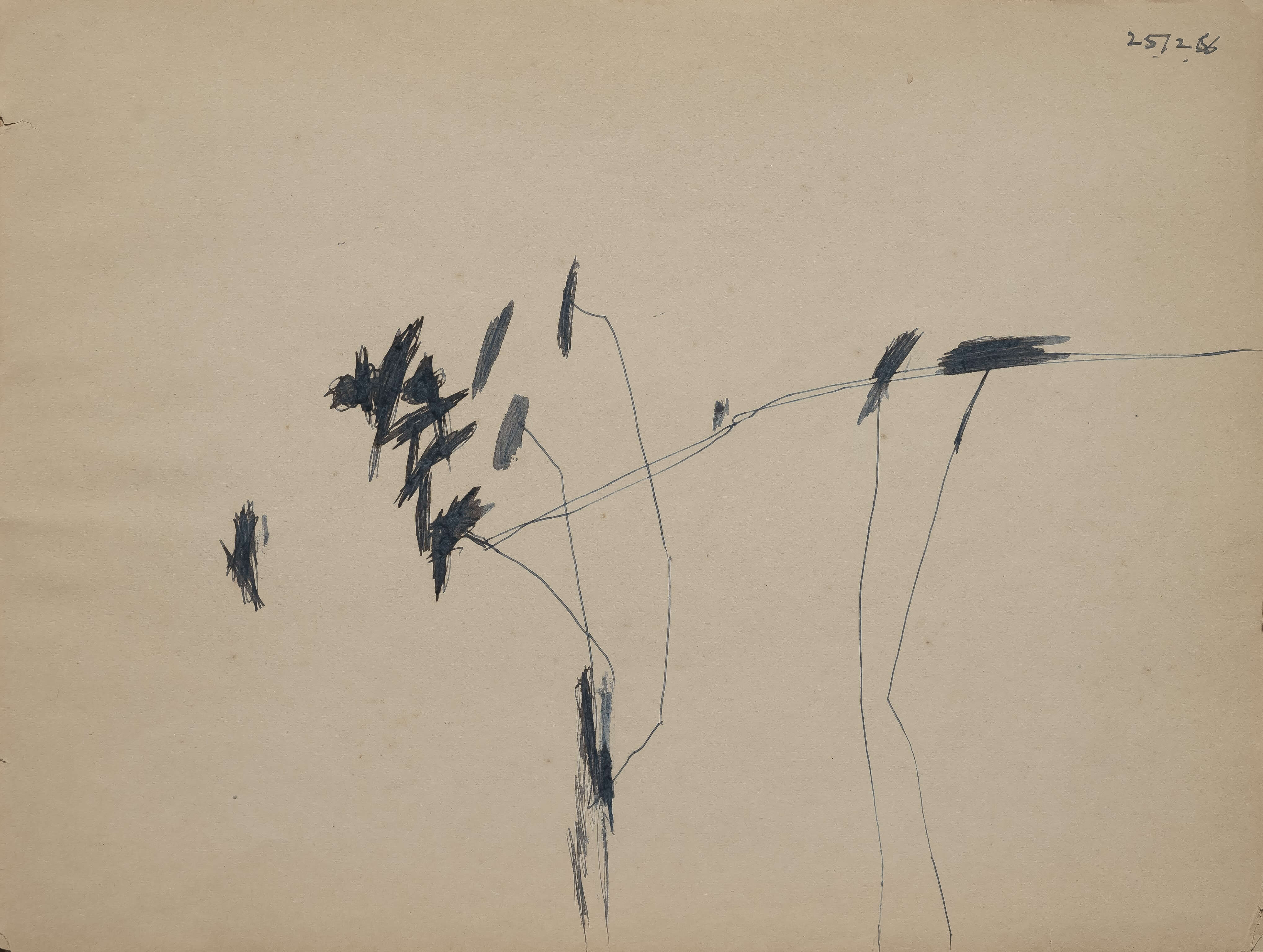 This sparse, haunting drawing speaks in whispers, not shouts, just as Somnath Hore, has always believed that art should speak for suffering. The dark smudges, raw scratches, are not just marks, they are wounds. Echoes of famine, war, and human degradation. It does not seek beauty but truth— sometimes brutal, often silent. This sketch, like many, is a cry from the depths—a distillation of pain into bare essentials. The space around the lines is not emptiness, it is silence after violence. Each stroke is memory—of hunger, of rebellion, of the fragile endurance of the human spirit.