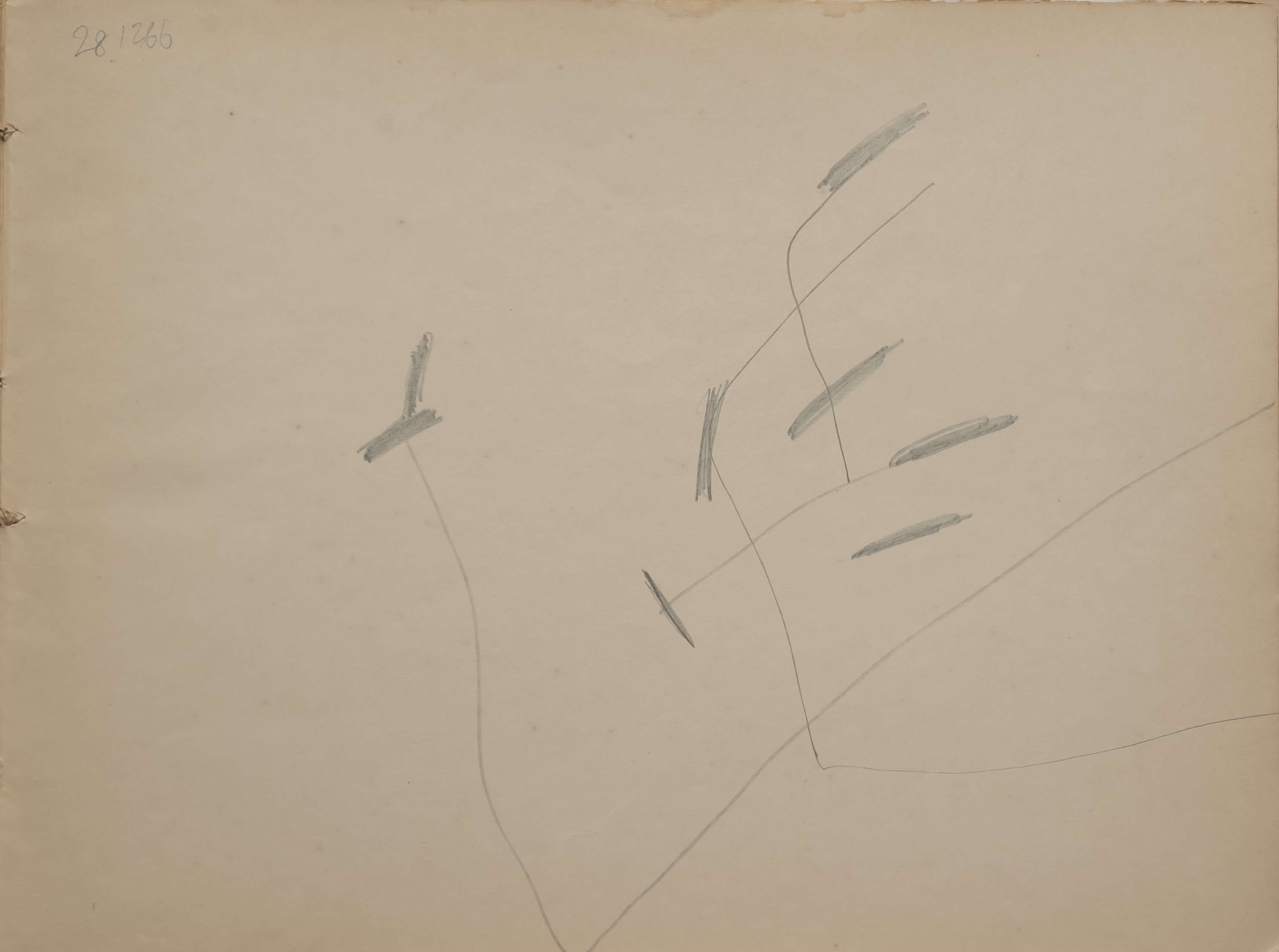 The drawing carries a quiet, contemplative mood, as if capturing a fleeting thought or memory. The delicate lines evoke a sense of fragility and openness, while the darker shaded strokes add emphasis and rhythm, almost like breaths on paper. The emptiness of the background heightens the feeling of solitude, yet the clustered marks create a subtle energy, like life emerging within silence.