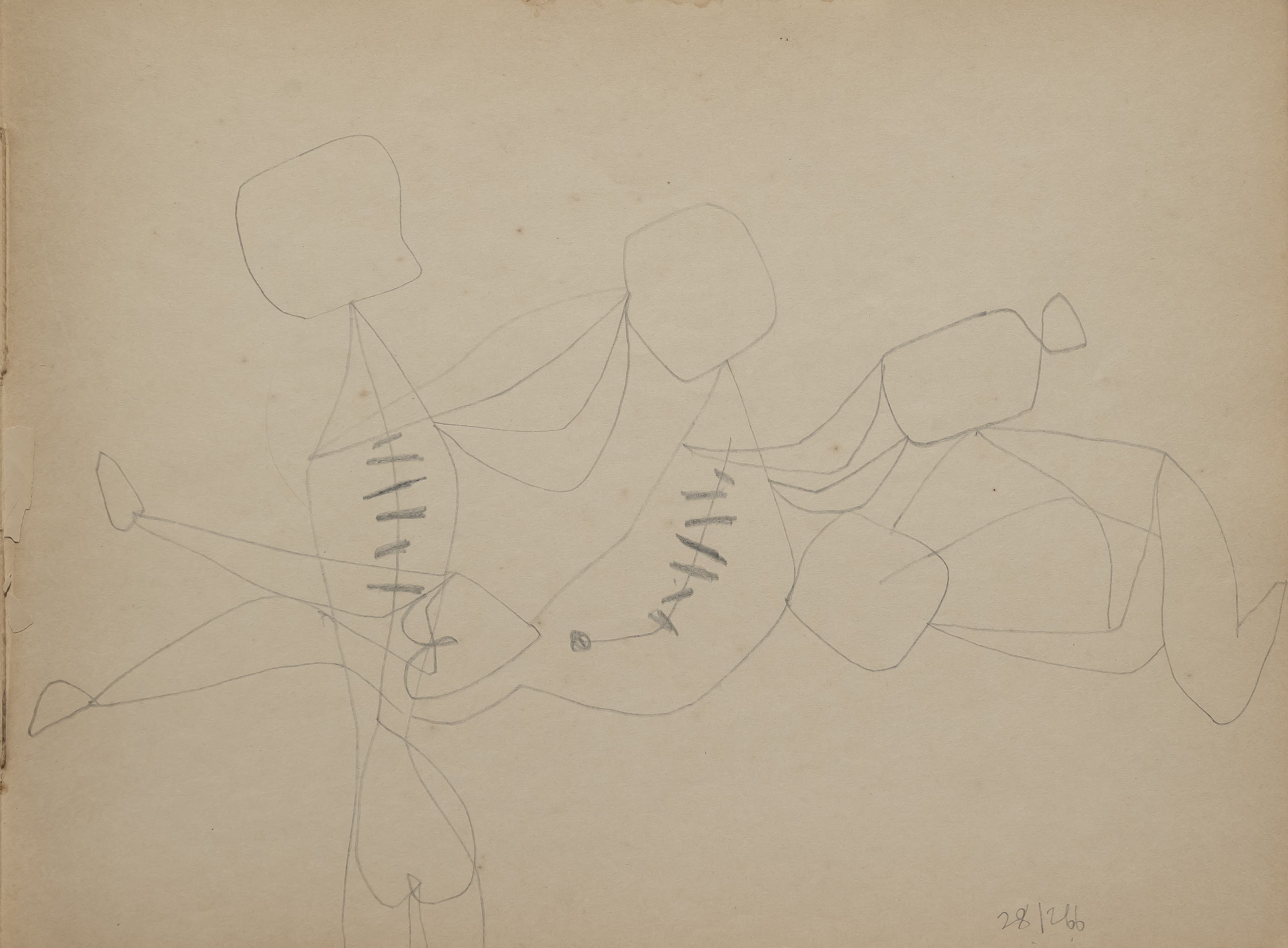 The overall style is minimal yet deliberate, merging figuration with abstraction to emphasise symbolic meaning over naturalistic representation. This drawing, like many of Hore’s works, is born from the scars of human suffering that history has etched into our collective skin. Each fragile line is a cry of anguish, and each stitched mark recalls wounds—both visible and invisible. The faceless figures embody the anonymity of pain, for suffering often erases individuality and turns humanity into shadows of survival. Yet, within these fragile outlines lies resilience—the will of the human body to endure, to persist, even when scarred and broken. Through these marks, Hore reminds the world what it often chooses to forget: that every scar tells a story.