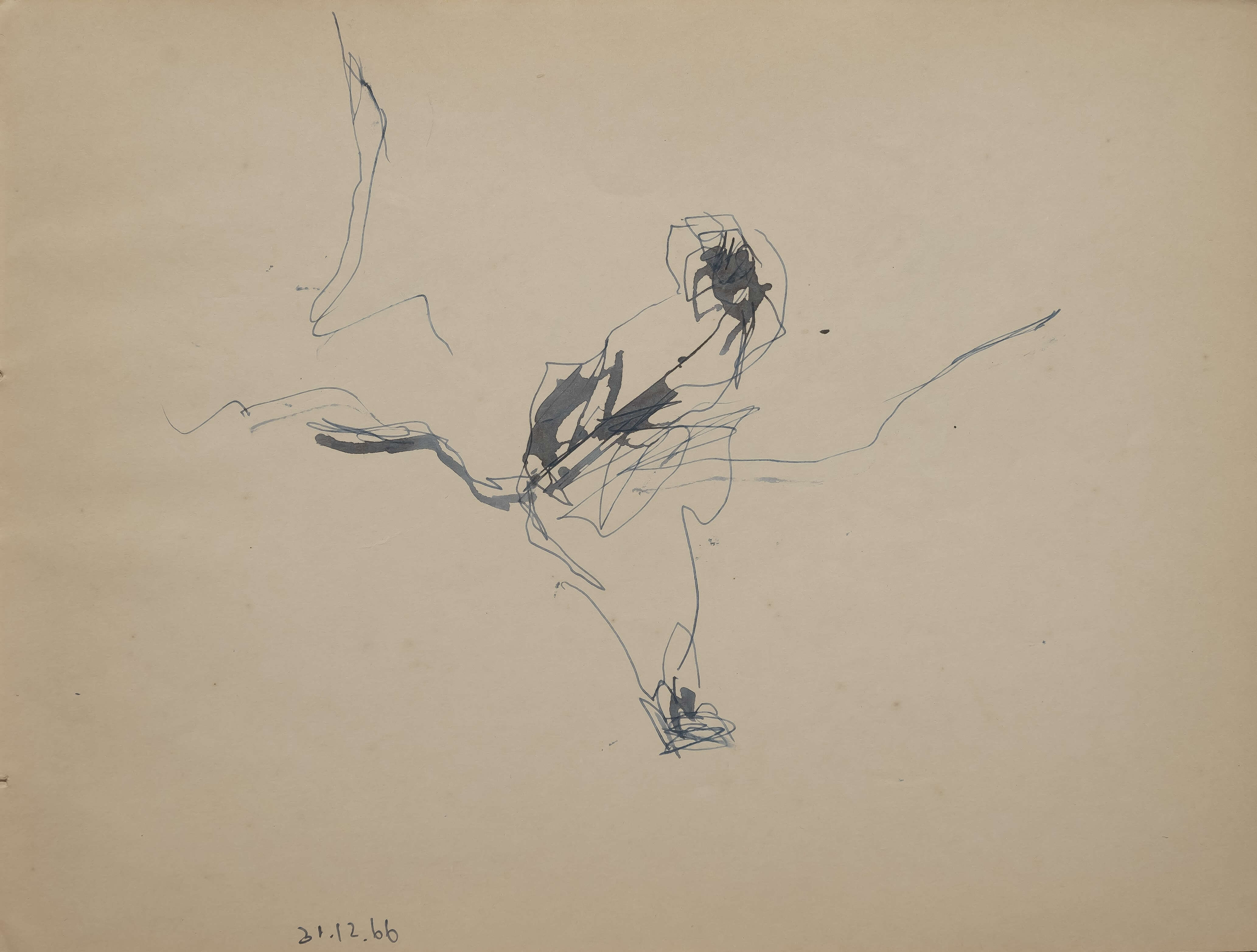 The drawing feels fragile and fleeting, as though it captures a single moment of tension or release. The dark cluster at the centre suggests a wound, a burden, or a source of inner turmoil, while the thin lines stretching outward evoke fragility and vulnerability. The open space around the figure deepens the sense of solitude, like a voice lost in silence. It carries a mood of unease, as if the image is on the verge of disappearing. The sketch feels both delicate and haunting, leaving the viewer with an impression of struggle, fragility, and unresolved pain.