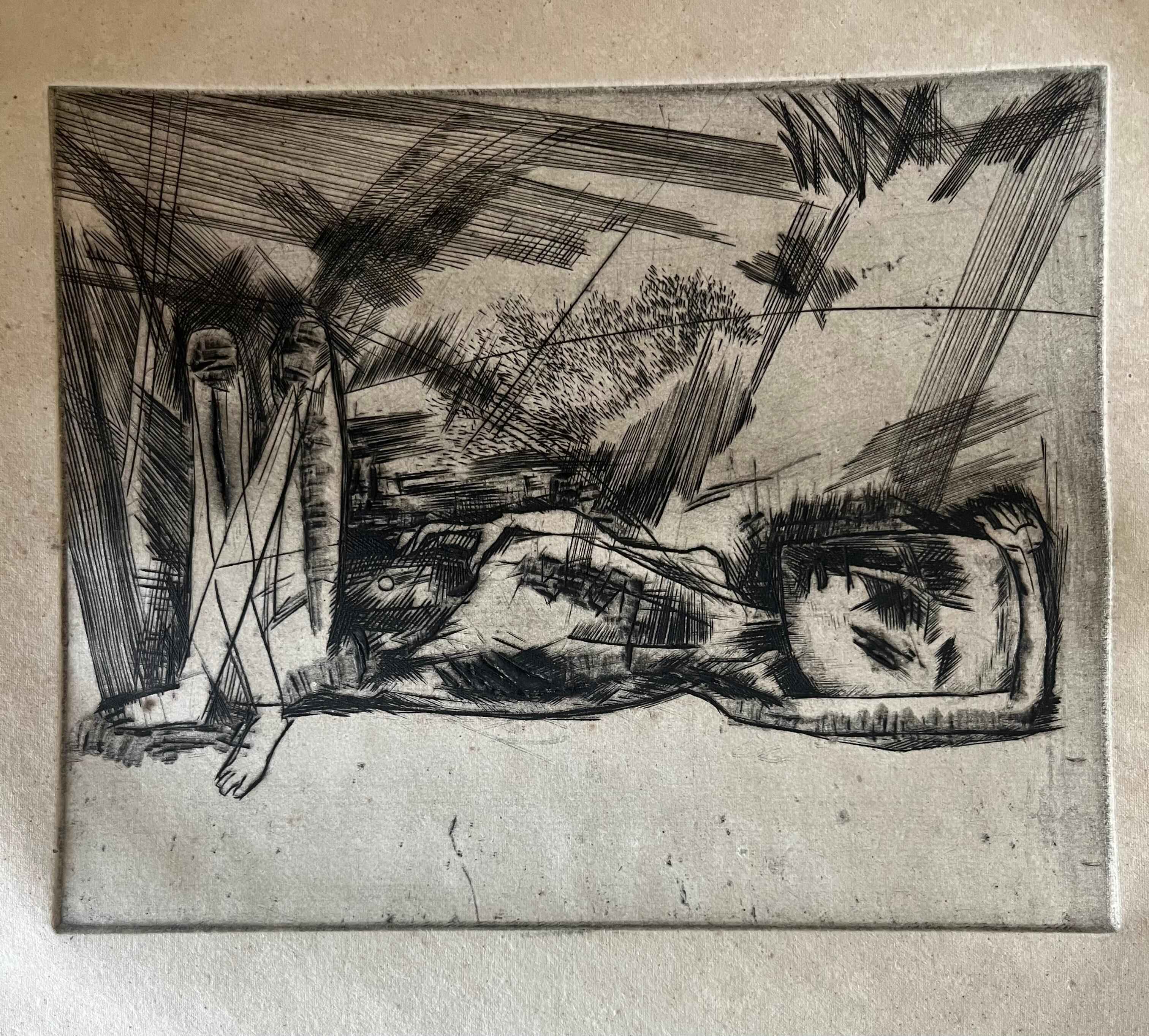Emotionally, the work evokes a deep sense of anguish, helplessness, and silence. The body, stretched horizontally, recalls famine victims, war casualties, or forgotten individuals lying outside the margins of society. Hore, who lived through the Bengal famine of 1943 and the Tebhaga peasant movement, often used his art to preserve the memory of those who suffered most but were least remembered. The scratches themselves feel like scars on human skin—Somnath Hore almost “wounded” the paper to echo the wounds of history. Looking at this, one doesn’t just see a figure; one feels the weight of suffering, abandonment, and yet also dignity in survival. It’s less about a specific person and more about the universal human body bearing the marks of collective trauma.