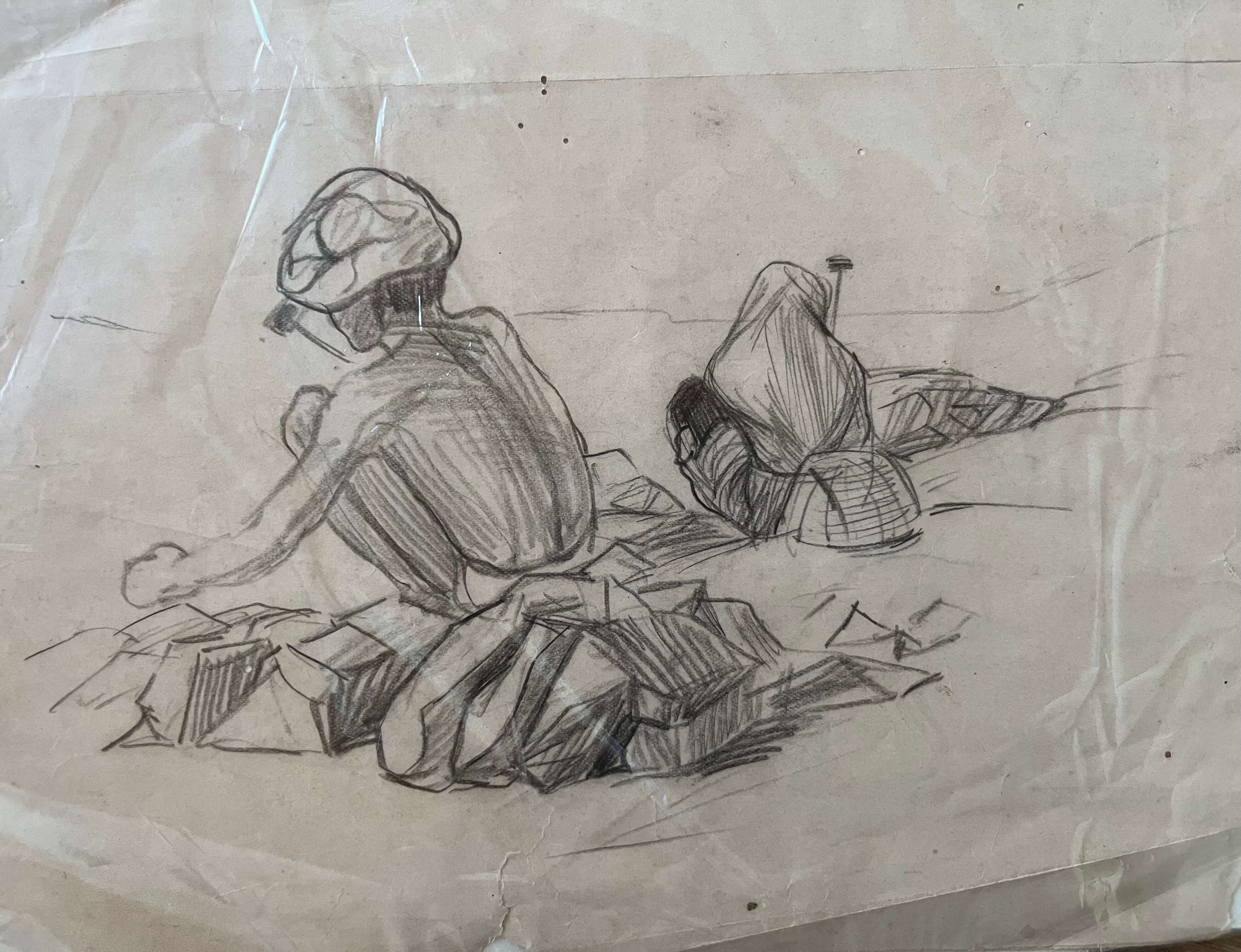 The sketch throbs with urgency and hardship of peasant resistance. Hore, deeply moved by the Tebhaga struggle, portrays not just the act of labour but the weight of injustice pressing on these bodies. The hunched backs, tense arms, and faceless determination symbolise resilience and suffering shared by countless peasants. There is no romanticism — only stark empathy, showing how hunger and oppression carved themselves into human form. Hore transforms ordinary gestures of sitting and working into timeless images of resistance, where pain, endurance, and collective strength become inseparable.