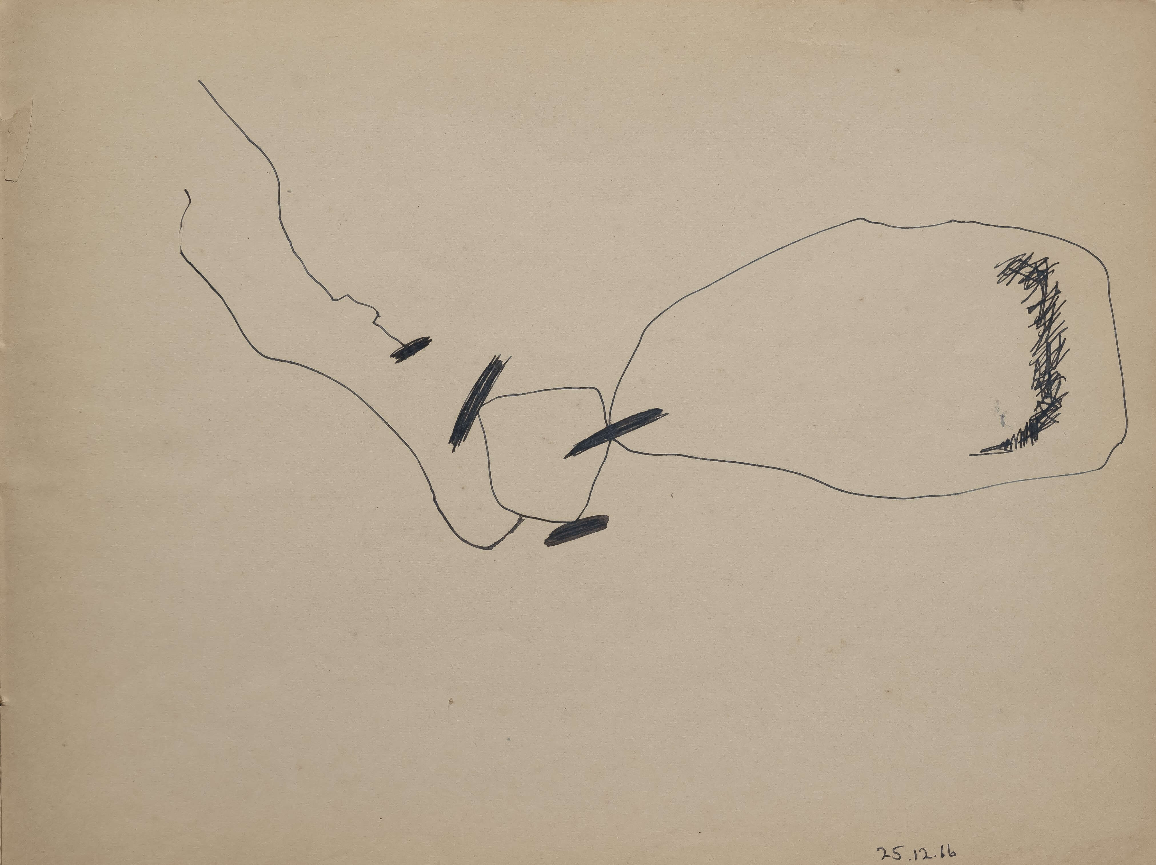 This artwork feels like a quiet exploration of balance and fragility. The thin wandering line carries a sense of hesitation, as if searching for direction. The shaded crescent in the right enclosure resembles a weight, a quiet burden pressing within an otherwise hollow space. The short, bold strokes seem like interruptions—moments of resistance against the flow. There’s a loneliness in the vast emptiness, but also a delicate persistence in the fragile marks. It feels like an inner journey captured in its rawest, most tentative form—half-formed thoughts suspended in silence.
